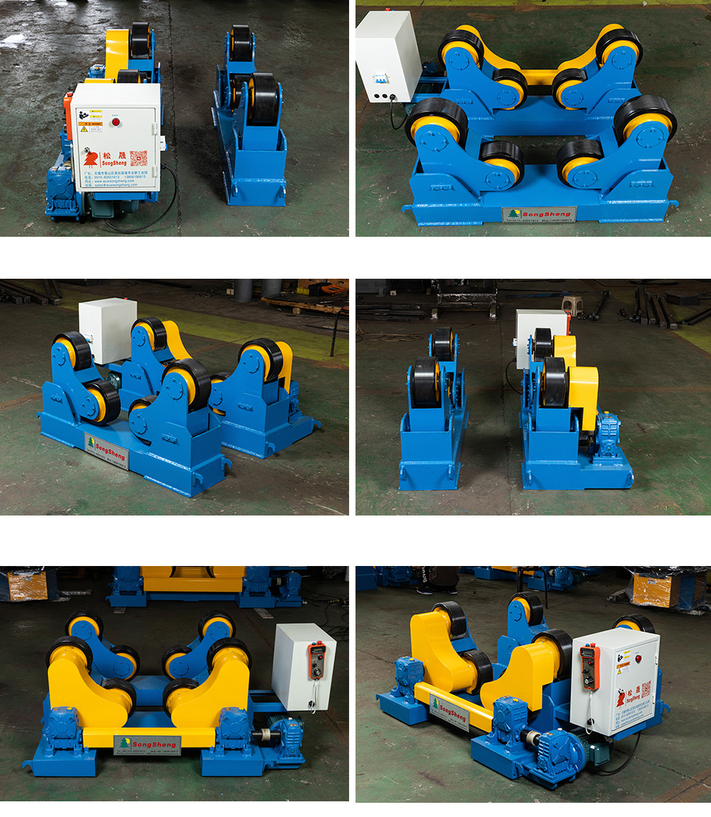 本滾輪架可分為可調式和自調式滾輪架,可適用規定範圍內大小不同直徑的產品,並能在規定範圍的焊接參數下,實現無級調速,傳動噪聲低,工作回轉平穩。