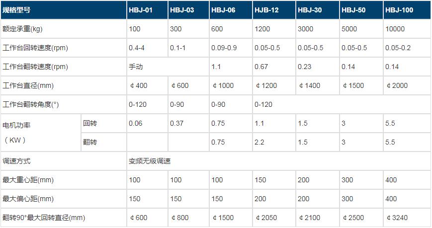 變位機主要由工作台、回轉機構、翻轉機構、導電裝置、機架和電控箱組成。工作台安裝在回轉機構中減速箱輸出軸上,由回轉機構帶動回轉,其上T型槽,可安裝T型槽用螺栓,使工件穩定地固定在工作台上。
