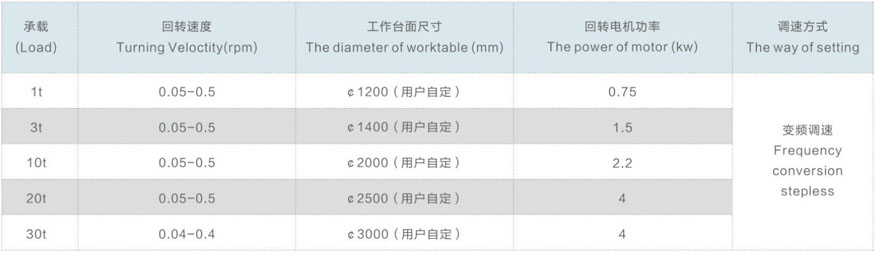 焊接回轉台主要參數: